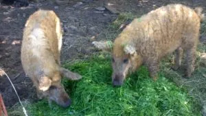 Wollschweine sind anspruchslose Speckschweine mit hohem Fettansatz. Die Sauen haben trotz relativ kleiner Würfe sehr gute Muttereigenschaften.